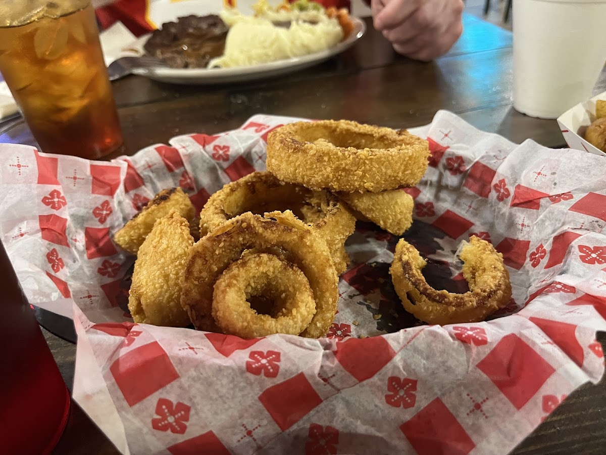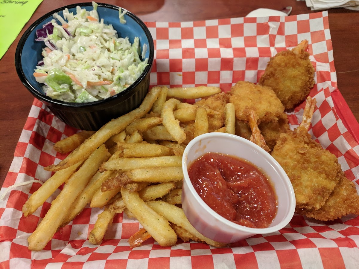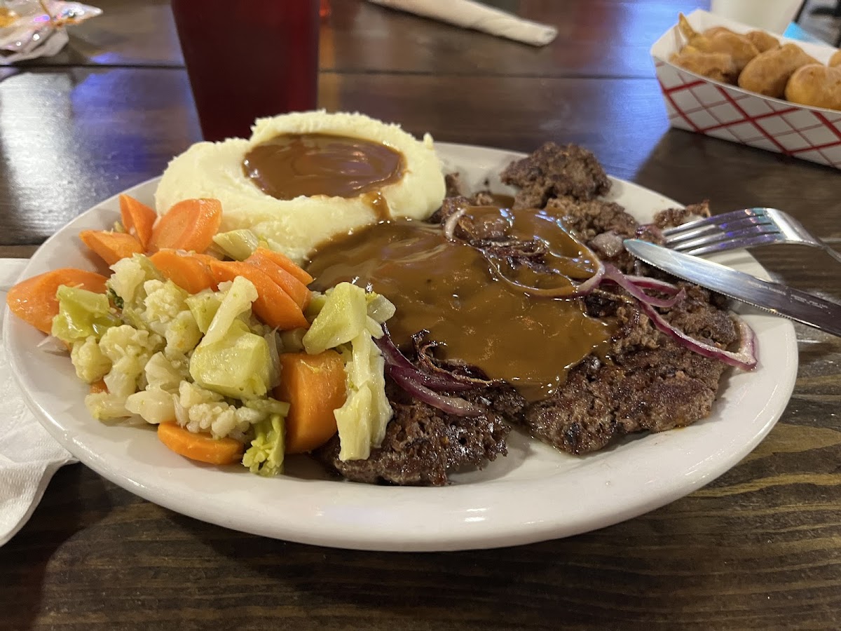 Stopped in after shopping. Had good recommendations. The service was exceptional. A little disappointed that the mashed potatoes were flakes not real potatoes I had a hard piece that was inedible that must have stuck to the side. My husband liked the hamburger steak, large portion. The veggies in the side were frozen not fresh. The onion rings were amazing. The baby seemed to enjoy the corn dogs, again a large portion. Seems like a lot of the locals eat here. Plenty of parking on the street.